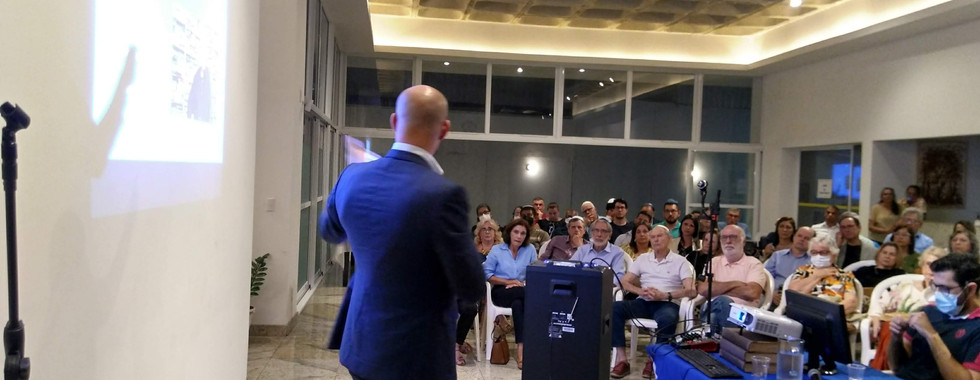 Foi preciso abrir a Sinagoga para pegar mais cadeiras do que já estava no salão principal da SIB para acomodar as mais de 80 pessoas presentes – isso sem contar aquelas que acompanharam pelo on-line pelo link distribuído nos grupos da comunidade, totalizando cerca de 100 pessoas.