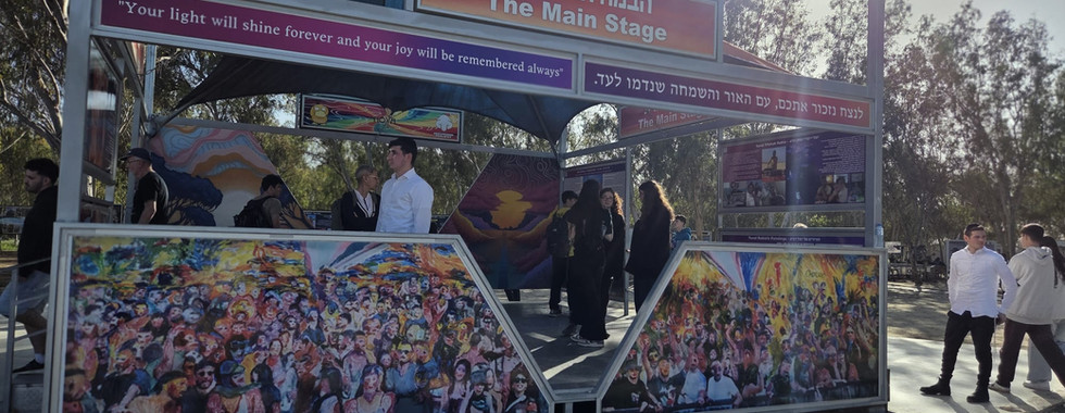O local do evento em Re'im tornou-se um memorial espontâneo repleto de fotos, flores e árvores plantadas pelas famílias e pelo KKL, servindo como um espaço de luto e de luta contra o esquecimento.